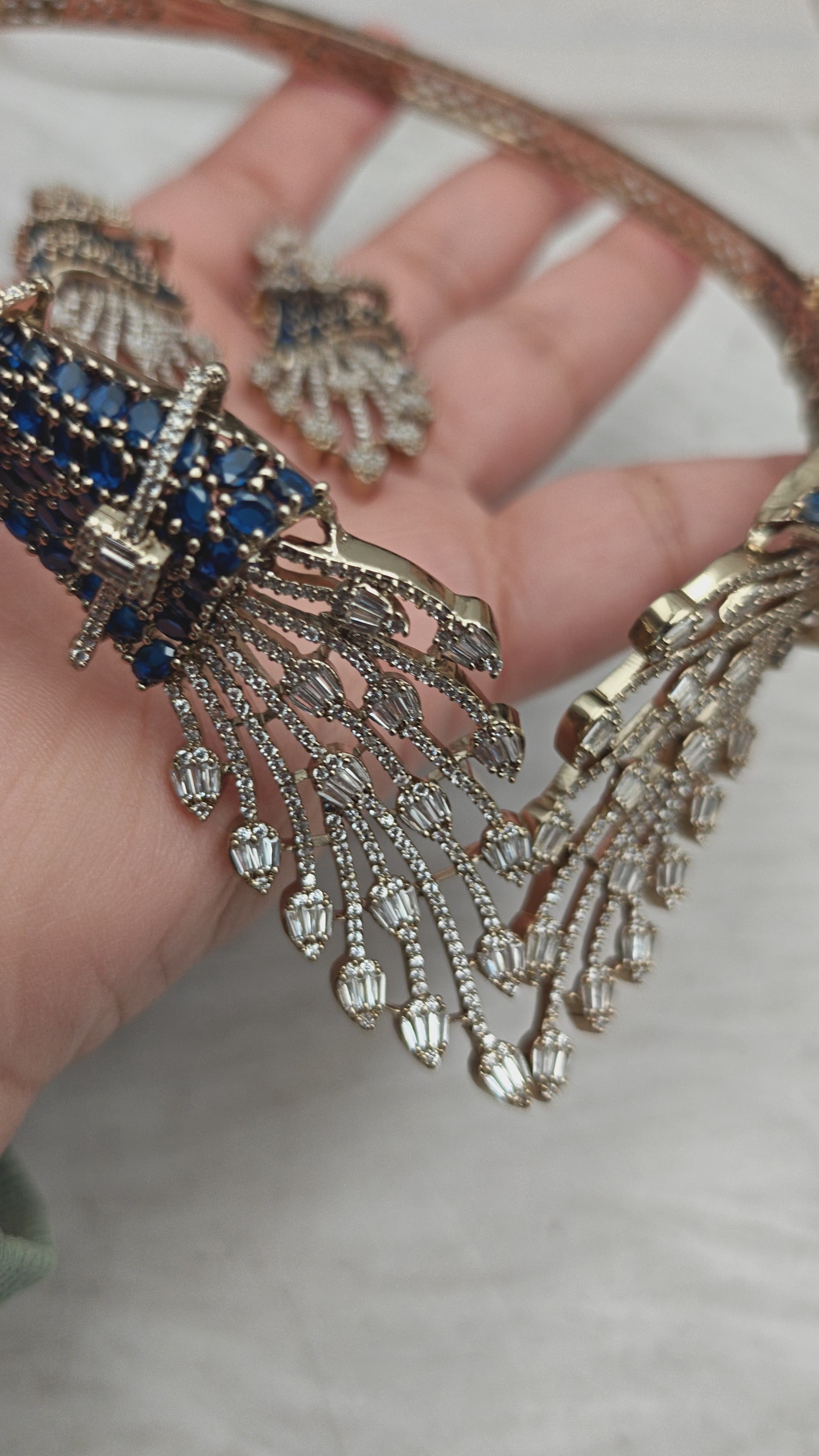 Elysian Empress Collar Style Hasli Necklace Set- Blue